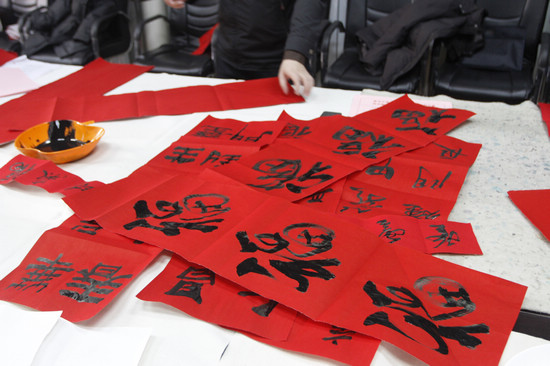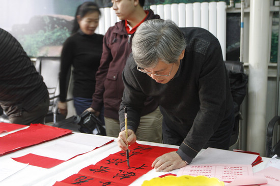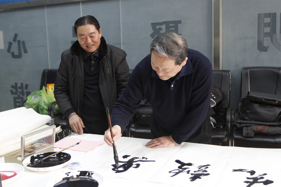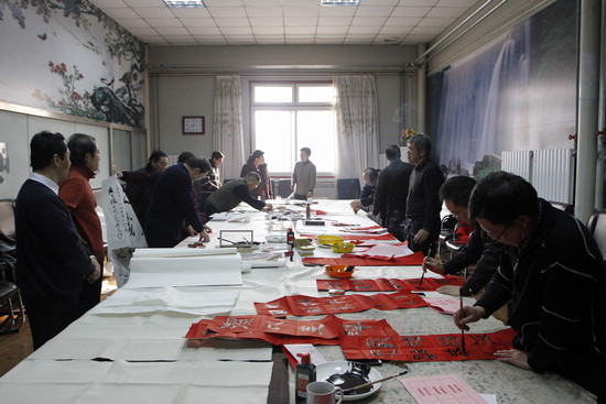 “平安即是家門福,孝友可為子弟風。”對于經歷過北京“7·21”特大暴雨、正處于經濟社會轉型期的北京房山洪寺村來說,這副春聯有著特別的意義。1月22日,由中直機關書畫協會和協會團體會員單位廣電總局書畫協會的張瑞祥、陳樹謙、孫平、趙輝、金玉杰、王書科、梁岳、邊傳久、關來順等書法家組成的送文化下鄉小分隊,在中直機關書畫協會主席武春河、中直機關工委群工部副部長舒家鑫的帶領下,到北京市房山區城關鎮開展送文化下鄉活動,贈送部分圖書,并為村民書寫春聯200余副。