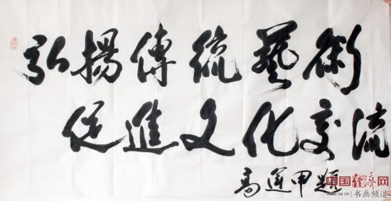 中國文聯原副主席高運甲為中國經濟網書畫頻道題寫《弘揚傳統藝術 促進文化交流》 中國經濟網記者李冬陽/攝
