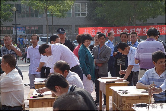 授牌儀式結束后,張改琴等領導在授牌儀式現場觀看了百名中小學生、百名機關干部、百名農民書法愛好者現場書法創作。 最后,張改琴代表中國書協向樂都區授牌,樂都區區長陶啟業接牌。授牌儀式上,段軍代表中國書協宣讀《關于命名海東市樂都區為中國書法之鄉的決定》。張陸一代表中國書協發表講話,他說:樂都歷史悠久,文化積淀厚重,書法藝術在這里有著優良的傳統和濃厚的氛圍。多年來,樂都區委、區政府高度重視文化事業發展,書法組織不斷健全,書法活動豐富多彩,書法事業取得長足發展,樂都書協多次被中國書協評為“中國書法進萬家活動”先進集體。希望樂都區以此次命名授牌為契機,珍惜榮譽,不斷進取,為推動書法藝術在西部地區的發展做出更大的貢獻。