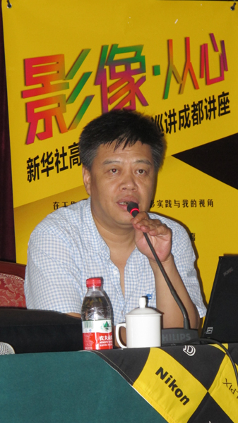 ???7月16日下午,由《攝影世界》雜志、尼康映像儀器銷售(中國(guó))有限公司主辦,新華社四川分社圖片中心、四川省攝影家協(xié)會(huì)協(xié)辦的“影像 從心”---新華社高端攝影文化講座在成都太成賓館10樓會(huì)議廳舉行。此次巡講是繼珠海、杭州、大連后的第四站,主講人北京青年報(bào)圖片部主任、北京新聞攝影學(xué)會(huì)副主席胡金喜用一幅幅生動(dòng)的新聞?wù)掌v述了自己如何在工作中進(jìn)行創(chuàng)作。此次講座吸引了200多名攝影愛好者和雜志的忠實(shí)讀者參與,現(xiàn)場(chǎng)氣氛活躍,并在會(huì)后與胡金喜進(jìn)行了現(xiàn)場(chǎng)問答互動(dòng),共同探討新聞攝影的拍攝。