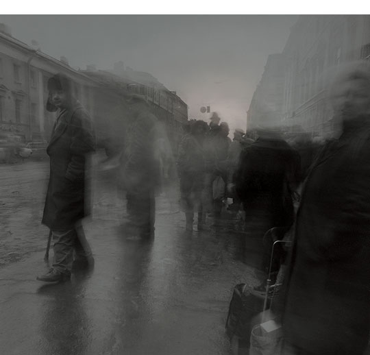 系列作品“影子之城”拍攝于1992-1994年,正是蘇聯剛剛解體之后。Titarenko在自傳中稱這一時期的俄羅斯“人們生活在無法實現的希望之中”,在創作中他大量運用了慢速快門技術,行走的人們變成了虛化的幽靈般的景象,城市則呈現出一片死寂。這些如鬼魅一般的陰影就是攝影師記錄下的真實影像,也正是蘇聯給俄羅斯留下的東西。