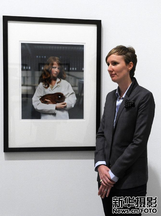 ??? 11月9日,在英國倫敦的國家肖像畫廊,2011年度泰勒·韋辛人像攝影獎一等獎獲得者伍德沃德站在其獲獎作品《哈麗雅特和杰克先生》前。新華社記者曾毅攝