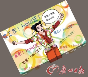 來(lái)歷:“hold住”一詞來(lái)源于香港中英混用詞匯,在《大學(xué)生了沒(méi)》里,一名叫Miss Lin的姐們以夸張的造型、做作的英語(yǔ)、扭捏的姿態(tài)向大家介紹什么是Fashion。其口頭禪“整個(gè)場(chǎng)面我要Hold住”則導(dǎo)致“hold住”一詞紅遍網(wǎng)絡(luò)。