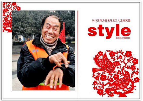 2013迎春之際,中國攝影家協會會員、2012年先后兩次榮膺四川巴蜀文藝獎的四川攝影家王偉用鏡頭為瀘州酒城的百名環衛工人造像,為他們勤辛的一年送上一些溫暖,將他們的風采和笑臉定格了下來 。拍攝中用2012最流的元素“江南styie ”來調動氣氛,讓喜感帶來歡笑和時尚,最后以特寫和擺中抓的手法完成。受到百名環衛工人的熱烈歡迎 ,王偉說只有將選題對準生活,貼近百姓,讓創作接地氣,才能更有味表現好我們當下提出的正能量。