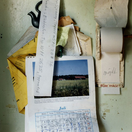 彼得的這組照片用非常平實客觀的視角,沒有大廣角和奇異視角帶來的視覺沖力。除了幾幅斯萬在家中的環(huán)境肖像外,整個系列拍攝的都是和斯萬生活有關的物件,往往是近距離拍攝,揭示了豐富的細節(jié),同時也消解了任何感情的色彩,冷靜而客觀。與他拍攝的其他系列不同,這組照片采用了彩色攝影的手法,少了他的黑白攝 影中的詩意,但是瞬間讓影像貼近了我們正常的觀看習慣,普通的物件被膠片凝固下來,永遠存在于那里,即便真實的物件會被丟棄,會隨著時間逐漸朽爛。