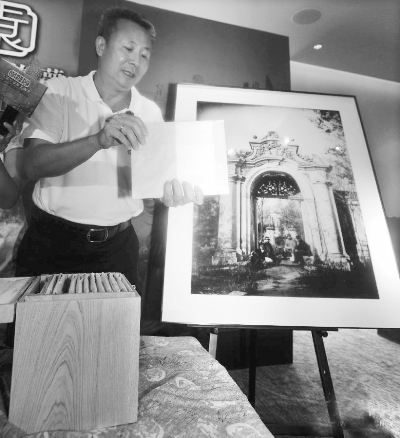 在海峽兩岸影像收藏界,徐宗懋是個(gè)響亮的名字。可是,當(dāng)初他卻完全不知道奧爾默底片還在世間。2010年初的一天,他忽然收到日本東京雄松堂古籍書(shū)店發(fā)來(lái)的西洋樓影像玻璃底片的資料,以及證明底片存在的照片。而且還透露,底片在一位法國(guó)收藏家手里,他有意出售。