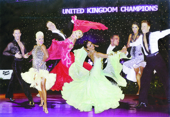2013英國UK公開錦標(biāo)賽冠軍榜(從左至右):職業(yè)拉丁冠軍——邁克爾·馬里托夫斯基/喬安娜·路尼斯(英國)、職業(yè)摩登冠軍——阿魯納斯·畢索卡斯/喀秋莎·德米多娃(美國)、業(yè)余摩登冠軍——馬雷克·科沙季/寶琳娜·格拉齊克(波蘭)、業(yè)余拉丁冠軍——尼爾·瓊斯/葉卡捷琳娜·索科洛娃(英國)