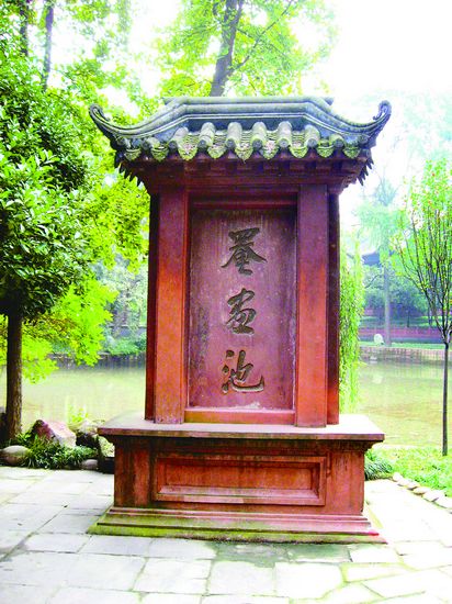 罨畫池非等閑之地。在唐代,這里就是著名的園林,湖畔東亭,曾出現(xiàn)在裴迪和杜甫相互酬唱的詩篇中,詩中的梅花,在園林中年年盛開。到南宋,因一位偉大的詩人在此地流連,朝夕相伴,迷戀上這里的湖波亭臺(tái)和花草林木,詩長吟,情永留。罨畫池,和這位詩人的名字,難分難解地連在了一起。這位詩人,是陸游。使我感興趣的是,游遍天下名勝的陸游,為何會(huì)對(duì)罨畫池如此鐘情。我問陪我喝茶的崇州友人,友人笑而不答。