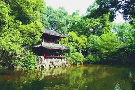 罨畫池被煙雨籠罩著。坐在湖畔的亭榭中喝茶,聊天,看風(fēng)景。湖上天色奇異,密布的云團(tuán),竟然沒有將陽光全部阻隔,幾縷陽光從云隙中射出,融化在迷蒙的煙雨中,湖面閃動(dòng)著斑斕的光點(diǎn)。湖上有霧,霧氣若有若無,在水面漂浮,遠(yuǎn)遠(yuǎn)近近的樹、橋、亭臺(tái)樓閣,都變得如同印象派油畫中的景物,朦朧而神秘。湖畔的垂柳在雨霧中輕搖,那一縷縷飄揚(yáng)的翠綠,給人親切的感覺,如有人晃動(dòng)絲綢的衣袖,試圖拂去湖上的霧氣,還天地以清明。