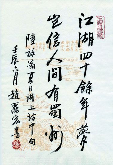 趙麗宏書陸游《池上見魚躍有懷姑熟舊游》