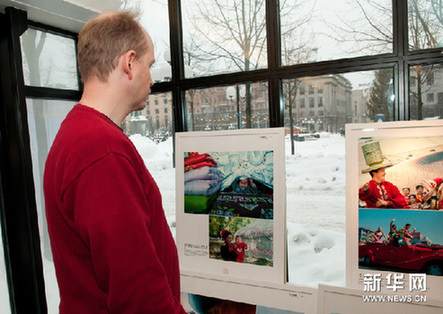 12月22日,參觀者在斯德哥爾摩國(guó)王花園影廊欣賞“大美新疆”攝影展圖片。新華網(wǎng)圖片 劉一楠 攝