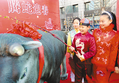 當日,北京市建國門地區舉行迎春系列文化活動中的重頭戲——鞭打春牛。由社區居民共同推選出的“春信子”與小牛童和春姑娘一起揮鞭打牛,祈福風調雨順、國泰民安、五谷豐登。