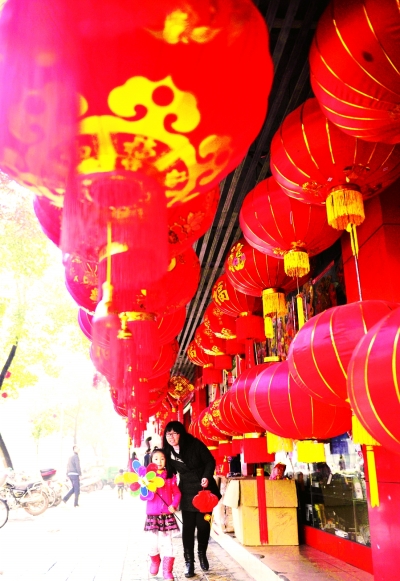 隨著春節(jié)的臨近,各種帶有濃烈節(jié)慶氣氛的燈籠、春聯(lián)、年畫(huà)和年糕、春餅等年貨,已在全國(guó)各地?zé)徜N。圖為群眾在江西省龍南縣紅旗大道一家飾品店選購(gòu)大紅燈籠。本報(bào)記者 劉新武攝