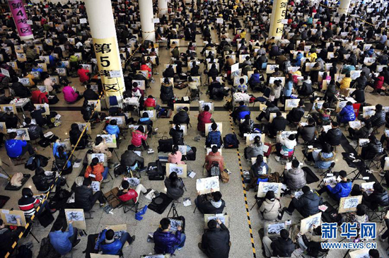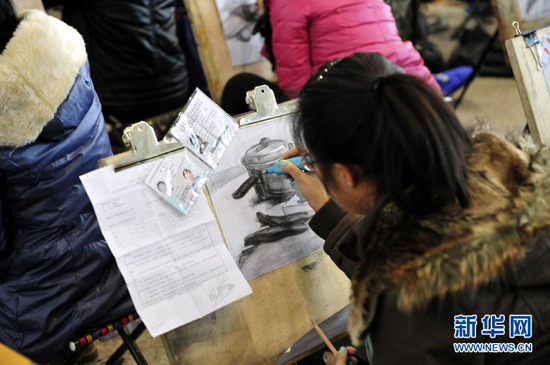 2月20日,報考山東工藝美術學院的考生在濟南舜耕國際會展中心參加考試。當日,為期兩天的山東工藝美術學院美術專業考試開考。2萬多名考生在濟南舜耕國際會展中心參加了上午的素描考試。 新華社發