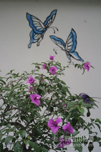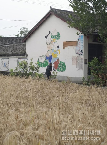 在綿竹市孝德鎮年畫村,家家戶戶房屋的白色外立面上都涂有綿竹年畫(5月9日攝)。