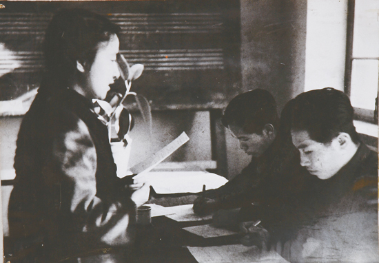 作曲系第二屆學(xué)生谷建芬(左)參加考試(主考教師竹風(fēng))(1952年)