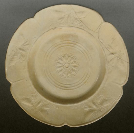 邢窯瓷器做工精細,底足像車床旋削過一般,棱角分明、規(guī)范如月,造型和裝飾亦十分豐富,印花、刻劃花、雕塑、鏤空等,手法多樣。2011年12月20日至2012年3月20日,在邢窯遺址正式發(fā)掘30周年之際,北京藝術(shù)博物館舉辦“千年迷夢——邢窯陶瓷藝術(shù)展”,展出古代邢窯瓷器200余件。圖中這件邢窯博物館藏唐代白釉“盈”字款印花蝴蝶紋盤,高4厘米、口徑17.1厘米、底徑8.5厘米,葵口,寬平沿,沿內(nèi)模印蝴蝶紋,折腰,平底,中心部印有花瓣紋,外側(cè)有三道凸弦紋,高圈足,足心刻“盈”字款,胎質(zhì)細膩,通體施白釉,釉色白中泛黃,造型大方規(guī)矩,為仿金銀器瓷器精品。