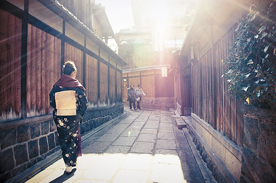 夜晚的京都很寧?kù)o。尤其在遠(yuǎn)離馬路的居民區(qū),燈光暗淡,行人稀少,這又使寧?kù)o中透出幾分冷清。