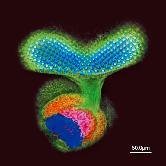 作品有一個非常傳神的名字“萌發”,猶如一粒剛剛發芽的種子,蘊含著蓬勃的生命氣息,令人感嘆生命發育的神奇和偉大。而它的真實取材來自果蠅幼蟲的眼盤和大腦。
