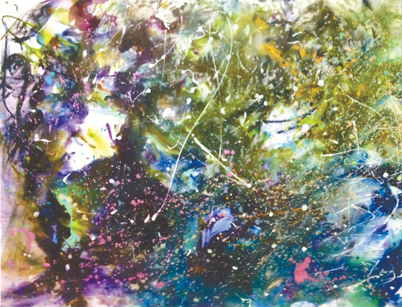 顧臨在繪畫上不斷創新,其作品最大特點是自由隨性、天真純凈,如她本人一樣率真。她常說自己就是個弄光者,顏料就是她手中的光,對著她的畫遠看近觀:于細節之中幻無量世界,于無形之中見諸多形象;光色交流變化無窮。顧臨的作品大多色彩如夢境般斑斕絢麗,但定睛觀看,畫面中滿是豐富的現實世界。現實生活中顧臨喜愛鉆研佛學,這讓她的畫面總是透出那么點兒參禪意境。她用作品旁觀現實世界,她作品中的世界熱鬧非凡,作為觀者的她卻冷靜異常,略顯孤獨但又自得其樂。參禪要從現實出發,最終又回歸現實。顧臨的畫已經將現實抽象成了斑斕的色彩,但最終落回具象的任務交給了觀眾,期待觀眾內心融化這些色彩。所以顧臨的繪畫雖然透露禪境但與禪畫不同,因為大多禪畫都是具象表現,她的作品更像禪曲一樣飄渺、空靈。