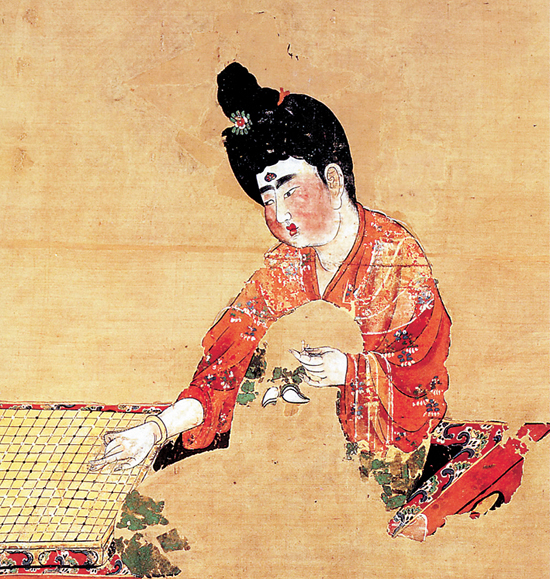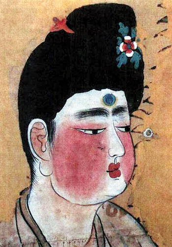 唐朝仕女圖上的美女點唇圖案