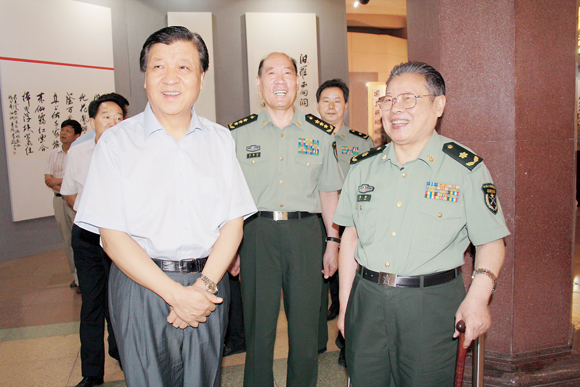 中央軍委委員、解放軍總政治部主任李繼耐,中宣部副部長翟衛華,中國文聯黨組副書記、副主席覃志剛,解放軍總政治部宣傳部部長周濤,原全國政協副秘書長張道誠,中國人民革命軍事博物館館長陳士富,中國書協分黨組副書記、秘書長陳洪武等也一同參觀。