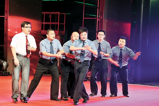 當親情與法律發生碰撞,檢察人會做出怎樣的回答?由棗莊市人民檢察院創演的小品《最后一班崗》給了觀眾一個明確而完美的答案。小品中,即將退休的老檢察長在接手最后一件案子時,從小就失去母親的女兒為男友求情,請父親網開一面,彌補多年來自己缺失的父愛、母愛。面對愛與恨的交織、情與法的考驗,在檢察官心中,公正無私永遠是無悔的選擇。當小品中的檢察長作出這一無悔抉擇時,臺下掌聲陣陣,這其中飽含著檢察人之間達成的強烈共鳴,也流露出觀眾對檢察人的敬重與欽佩。滕州市人民檢察院創演的情景歌舞《迎親》揭開年輕檢察官三推婚期的謎底,在護法為民的道路上,兒女私情只能暫放一邊,勤勤懇懇、無怨無悔才是檢察人生不變的主題。伴隨著魯南的經濟發展,檢察隊伍建設、人才培養也在不斷推進,棗莊市薛城區人民檢察院創編的群口相聲《新聞達人秀》向觀眾展示了檢察隊伍中的新鮮血液,這些年輕的檢察官有來自五湖四海的精英,也有大洋彼岸學成歸來的海歸,他們朝氣蓬勃、熱忱滿腔,盡心為檢察事業譜寫青春的篇章。