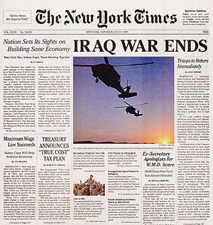 2008年7月4日,表演團體The Yes Men在紐約城的街道上分發了一版仿制的《紐約時報》。報紙的日期是一年之后的2009年7月4日,其中的信息包括了很多人的心愿和夢想,也預先記錄了未來可能發生的事件。最醒目的頭版頭條是《伊拉克戰爭結束》《國家健康保險法案通過》,讓讀者感到驚訝和不安。