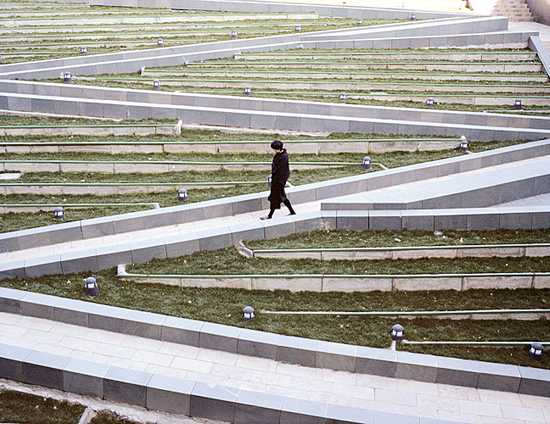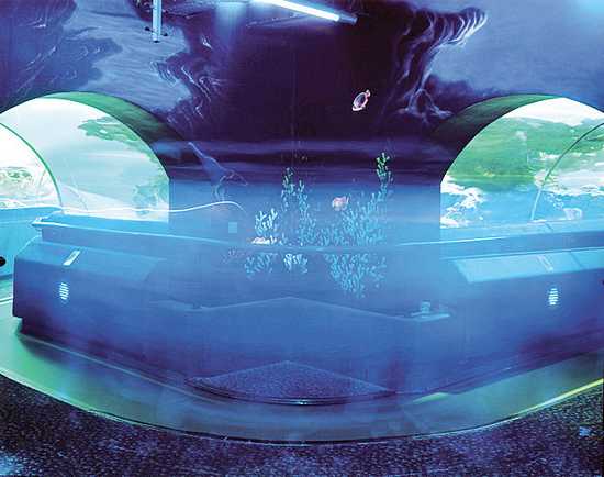在楊圓圓看來,一個現代人可以在陌生的城市找到無數與家鄉雷同的景物,而“家鄉”卻變得更為陌生;一切看似唾手可得,實際卻是越發遙遠。采訪時她回憶道:“印象最深的是我在海洋館里,選擇用曝光需要半小時的最小光圈,再蒙上大大的黑布,整個拍攝過程變得像一個儀式。隧道是兩個拱形,中間被隔開,源源不絕的游客從左邊的隧道被傳送到右邊。他們觀看著那些原本最為神秘,現在卻可供觀賞的海底生物,觀看著鉆在黑布里的我,同時也在被我觀察。最后儀式結束,人的痕跡全部消失,畫面里留下的只有光與顏色?!边@些略顯荒誕的圖景讓她產生了某種奇異的鄉愁,并且讓她意識到生在這樣的時代,跟所有的人與事物都是捆綁在一起的。