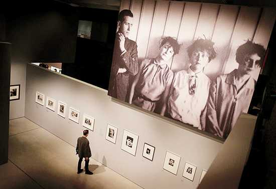 展廳內(nèi)的巨幅攝影作品:設(shè)計了第一把鋼管椅的馬歇布勞耶與學(xué)生們的合影