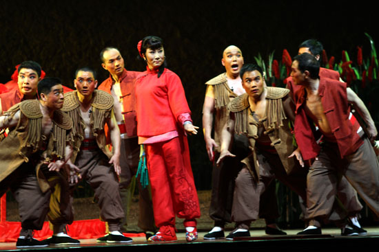 8月31日、9月1日晚,作為“向黨的十八大獻禮——河南省優(yōu)秀劇(節(jié))目北京展演月”的重點劇目,由河南省三門峽市豫劇團排演的大型現(xiàn)代豫劇《紅高粱》在北京長安大戲院精彩上演。
