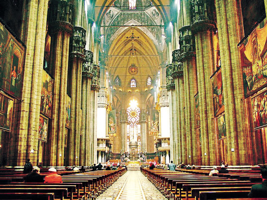和諧與對稱是緊密地聯(lián)系起來的,在米蘭大教堂里,處處體現(xiàn)了“建筑是凝固的音樂”。