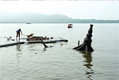 13時左右,受大風大雨的影響,位于杭州西湖一公園的集賢亭忽然倒塌落入湖中。據現場一目擊者介紹,亭子是4個柱子斷掉倒入湖中的,當時有4人及時逃離。目前集賢亭所在的平臺已經放置警示標志,西湖水域管理處派出多艘應急船只,將落入湖內的亭子拆卸運離湖面,亭內的對聯、牌匾等物也被打撈起來。