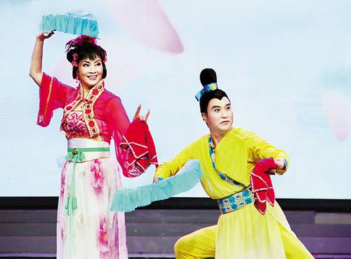 閆淑平與尹為民表演二人轉《西廂觀畫》