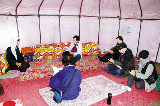 熱情好客的塔吉克族老鄉自愿給畫家們當起了“模特” 孟祥寧 攝