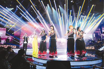 為創(chuàng)新辦節(jié)形式,本屆民歌藝術(shù)節(jié)以“民歌選秀”的形式助推民歌的普及與發(fā)展,推出了“一聲所愛·大地飛歌”2012民歌大賽,反響十分熱烈。9月21日晚,在廣西體育中心舉行的開幕晚會將首次推出360度全景開放舞臺,為觀眾帶來全方位視覺沖擊。圖為“一聲所愛·大地飛歌”2012民歌大賽決賽現(xiàn)場。
