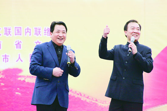“歡聲笑聲歌聲掌聲,聲聲悅耳;歌星笑星舞星明星,星星爭輝。一首歌獻著真情,一段舞承載厚誼,一個相聲充滿歡笑……”中國文聯副主席、中國曲協主席劉蘭芳的一段貫口剛好是對此時此景最恰當不過的形容。