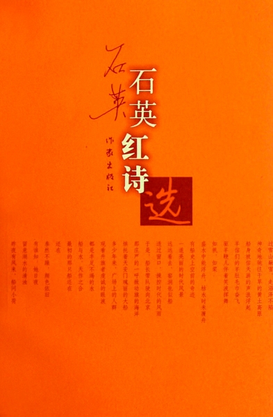 一本透著溫暖色彩、橘紅似血的封面設計的詩集捧在手上,如手捧一塊被烈士鮮血染紅的圣石,莊嚴、熱烈,令我肅然起敬。在當前詩壇的語境下,單就這本《石英紅詩選》的名稱,就給我一種披荊斬棘、赴湯蹈火,在所不辭的壯士的感覺。