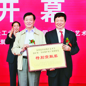 梁嘉琨代表中國煤炭工業協會、中國煤礦文聯向展覽的成功舉辦表示祝賀。他說:“徐礦是中國井工開采歷史最長的煤炭企業之一,新中國成立后,為祖國經濟建設和煤炭工業改革發展作出了歷史性的貢獻。特別是進入新世紀以來,徐礦集團以大無畏的創業精神,很好地破解了煤炭資源枯竭的難題,為企業插上了騰飛的翅膀。第四屆中國煤礦藝術節集郵展開幕之際,恰逢徐礦開采130周年慶典之時,我們都感到非常高興。這不僅是徐礦人的節日,也是550萬煤礦工人自己的節日。走過百年的徐礦集團不僅為國家的經濟建設貢獻了不可或缺的煤炭資源,而且在文化建設方面也取得了巨大成就,積淀了濃厚的獨具特色的煤礦文化。隨著煤礦職工生活水平和文化素質的提高,集郵也逐漸成為群眾性文化活動的重要內容,形成了以個體為主開展文化活動最為龐大的一支生力軍,并在國內、國際的集郵大賽中屢獲佳績,成果喜人。煤礦舉辦大型文化藝術活動、各企業集團舉辦大型節日慶典,都融入了集郵的元素,發行了紀念封、明信片、個性化郵票等,以集郵的方式反映了礦山火熱的生活,謳歌了礦工的高貴品格,弘揚了‘奉獻、寬容、團結、創新’的煤炭精神。”隨后,濮洪九代表第四屆中國煤礦藝術節組委會向徐州礦務集團公司頒發了特別貢獻獎。