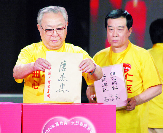 五年來,中國曲協組織和引導廣大曲藝家和曲藝工作者積極參與抗擊汶川大地震、玉樹地震、南方低溫雨雪冰凍、舟曲泥石流等重大自然災害,開展了“愛的奉獻——抗震救災大義演”、“愛心化冰雪 真情暖人間——曲藝界抗冰雪賑災大義演”、“情系舟曲 大愛無疆——曲藝界為甘肅舟曲災區賑災義演”等一系列撫慰心靈、鼓舞人心的慰問募捐活動,廣大曲藝工作者迅速反應、編創節目,踴躍捐款捐物,充分體現了對祖國、對人民的大情、大義、大愛。