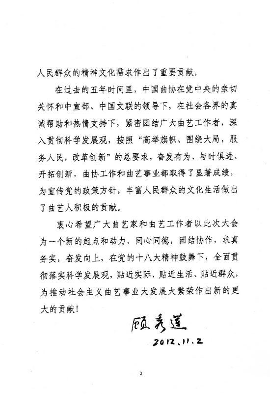 (2012年11月27日中國曲藝家協會第七次全國代表大會第二次全體會議通過)