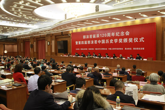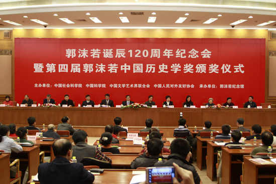 12月18日,由中國社會科學院、中國科學院、中國文學藝術界聯合會、中國人民對外友好協會聯合主辦,郭沫若紀念館承辦的“郭沫若誕辰120周年紀念會暨第四屆郭沫若中國歷史學獎頒獎儀式”在人民大會堂舉行。