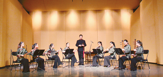 這是一場很有質地的演奏會,雖然并非名團,但在都市水泥森林里中卻極為罕見。演奏會成員來自北京師范大學藝術與傳媒學院“和雅樂坊”,由該學院音樂系器樂專業學生組成,而這個小型的室內樂團是器樂教研室在長期教學實踐過程中,逐漸發展起來的團隊,秉承薪火相傳、兼收并蓄的理念,近年來在傳統實踐上,虛心向民間藝術傳承人學習,親歷田野。這也令自詡為“爬坡人”的該樂團藝術顧問劉德海頗有感慨:以尋求母語的心境走向田野,傳統民間為藝術生存之命根,希望在田野,堅持再堅持!在北京師范大學藝術與傳媒學院院長周星看來,師范學堂的優勢在于其綜合性教育,尤其是在音樂傳統幾乎百年的藝術學院中,對于民族民間非物質文化遺產的傳揚應該來自于一種自覺和責任。他表示,此次音樂會也正力圖探索出一條實踐教學與理論科研并重、具有師范大學特色的傳統音樂教育之路,以期在北京師范大學建立起傳統音樂的教育基地。
