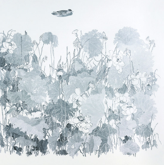 或清新、或尖銳、或張揚、或平實、或典雅、或新奇……年輕人的活力、在語言方面的探索以及獨特的藝術表現力,是這次展覽留給觀眾最為深刻的印象。比如,當前描繪時尚男女的工筆畫創作很多,同為工筆畫,《遇.見》卻把油畫的元素融入其間;《清蓮禪意》摒棄了傳統中國畫的表現手法,減掉用筆,減掉書寫性,采用了一些裝飾性的線條,體現出作者對于筆墨的把握能力;表現新疆人民古樸、純樸、質樸精神面貌的《戈壁》,筆墨到位、純熟、老練,但又不墨守程式;《破曉》將桌椅與古箏、滑板、象棋并置,裝置一般的作品傳遞出中國傳統居室古雅的氛圍;《翹楚·韻》沖破漆畫桎梏,反而發揮了西畫的特長。北京畫院藝委會副主任王志純感到這次展覽的學術性很強,所反映出來的時代氣息和時代精神是蓬勃的、創新的,“我覺得當代藝術創作最重要的一個問題是傳統藝術的時代和現實的轉換,這次展覽中的一些作品無疑完成了這種創造性的轉換”。
