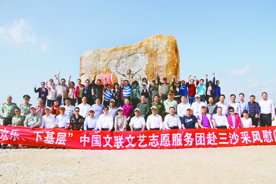 2013年1月1日,中國文聯文藝志愿服務團和三沙市黨政軍領導在三沙市成立紀念碑前合影