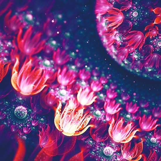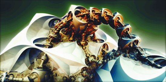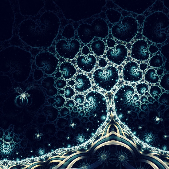 分形實(shí)際上是對宇宙中萬物的一種抽象,是對本質(zhì)的提煉。既然分形是描述大自然最有利的數(shù)學(xué)工具,豈不是最絕妙的藝術(shù)創(chuàng)作工具?大自然中已知和未知的結(jié)構(gòu),都可以用分形方法繪制出來,將抽象的概念形象化藝術(shù)化再現(xiàn),讓事物更接近其本質(zhì)上隱藏的美感。