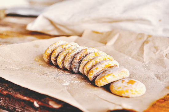 新鮮優質的云片糕細膩柔軟,猶如凝脂。25片一扎,每片長寬一致,薄而均勻