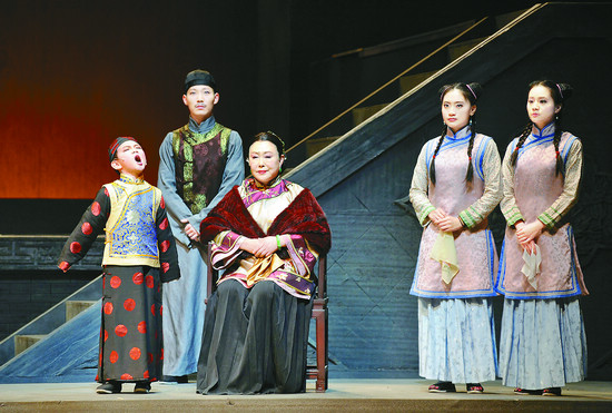 中國國家話劇院2013年新創大戲《大宅門》于1月17日在國家大劇院首演,在話劇舞臺上為觀眾再現白家老字號的沉浮往事。該戲由《大宅門》電視劇版導演郭寶昌執導,國家話劇院演員劉威、朱媛媛、雷恪生、劉佩琦以及特邀演員斯琴高娃擔任主角。老北京的故事、老宅院的情仇、老字號的堅守……導演郭寶昌用自己的方式將白家的故事娓娓道來。高尚 攝
