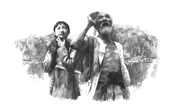 李晨是魯迅美術學院插畫系教授,執掌教鞭之余勤于創作,他有著能觸及表現對象靈魂的本領,而這恰恰是一位優秀人物畫家所必須的。作品中,文字內容和畫面若能達到水乳交融、珠聯璧合的效果,畫面本身要具有獨立的生命力,它借文字而生,也可以單獨游走于讀者的精神世界。對普通的插圖畫家、連環畫家來說,他們所做的工作是從屬性的、機械性的,而李晨始終堅持獨創性,文字或人物僅僅是觸發他創作靈感的媒介而已,他會忠實于表現對象,卻不會成為表現對象的奴仆。