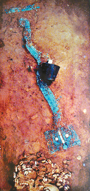 關(guān)于蛇蛻皮的神話,在漢語中留下的詞語有蛇皮、蚹或虵皮等。道教以此為原型,發(fā)揮成“蟬蛻蛇解”的仙人永生理想。北齊顏之推《顏氏家訓(xùn)·名實(shí)》說:“夫神滅形消,遺聲余價(jià),亦猶蟬殼虵皮獸迒鳥跡耳,何預(yù)于死者,而圣人以為名教乎?”《本草綱目》有“蛇蛻”一條,為藥中名品。《山海經(jīng)》中九處寫到神祇或巨人“珥蛇”,即以蛇為耳飾。過去不明白珥蛇的具體樣子,現(xiàn)在有多件出土文物足以說明珥蛇是來自大傳統(tǒng)的禮俗,以龍蛇為天地之間、神與人之間溝通使者,耳上戴蛇或龍蛇形玉玦,標(biāo)志著主人的通神能力。虹字從蟲,表明造字者心目中的彩虹是龍蛇幻化而成的,橋狀的虹也預(yù)示天地溝通之橋。宋葉廷珪《海錄碎事·帝王》:“太史令康相言于劉聰曰:‘蛇虹見彌天,一岐南徹,三日并照,此皆大異,其征不遠(yuǎn)也。’”
